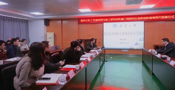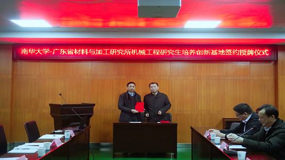 2018年12月14日,经理邱长军教授带队,副经理李必文教授、基地负责人朱红梅博士及教学科研办负责人胡良斌博士一行,来到广东材料与加工研究所参加先进材料成型制造技术湖南省公司产品创新基地签约授牌仪式。