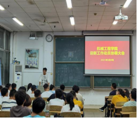 首先,辅导员周楠通报了2021迎新工作整体部署,交代了本次会议的大致流程,介绍了新生入学须知,肯定了参与迎新工作的全体师生的精神,号召全体人员在疫情防控和安排部署下圆满完成此次迎新工作。