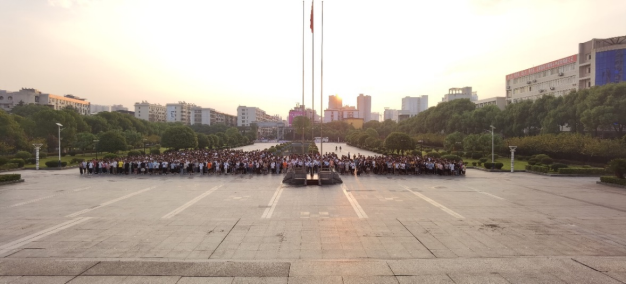在朝阳初升的背景下,当国旗班的旗手们以饱满的热情,庄严地护卫五星红旗走向升旗台,雄壮有力的《义勇军进行曲》响彻南华广场,五星红旗冉冉升起,老师们与同学们集体行注目礼,画面显得格外庄严与肃穆。