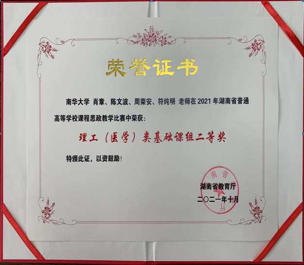 2021年9月28日,湖南省普通高等公司课程思政教学比赛决赛落下帷幕。球速体育肖章老师教学团队在此次思政教学比赛中荣获理工(医学)类基础课组二等奖。今天肖章老师代表教师团队领回了获奖证书。