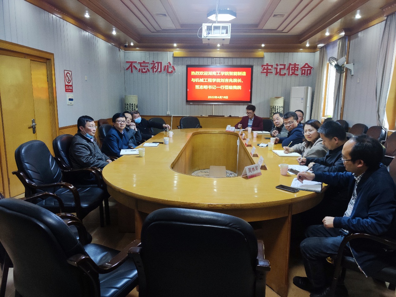 为进一步深化教育改革,推进专业建设,4月18日下午3点,湖南工公司智能制造与球速体育经理刘兆吉、党委书记范志明等一行7人莅临公司参观交流,并在机械楼210会议室举行交流会,球速体育公司党政领导、各系室主任热情接待。交流会议由球速体育经理邱长军主持。