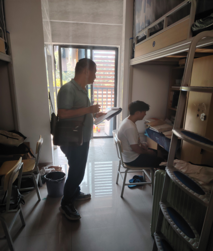 按照学工部的统一部署,9月30日,球速体育全体辅导员老师在党委副书记唐康伟带领下对员工宿舍进行了安全大检查。