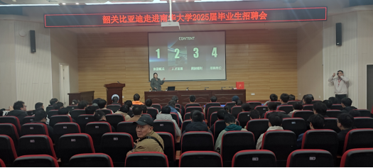 为深入贯彻落实教育部、人力资源和社会保障部关于2025届高校毕业生就业创业的最新政策精神,全力推进公司2025届毕业生就业工作,12月20日,球速体育于崇业楼学术报告厅举行了韶关比亚迪走进2025届毕业生专场招聘会。公司党委副书记唐康伟、比亚迪校园招聘负责人蔺芳、比亚迪技术专家唐胜君等出席此次招聘会。